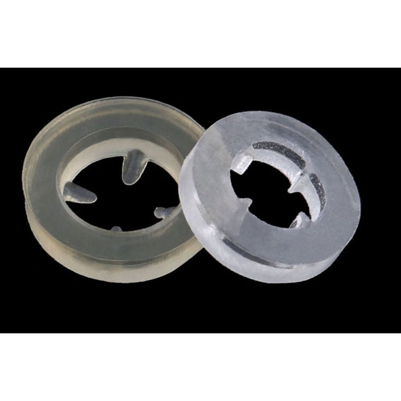 Son arandelas de retención de plástico, diseñados para bloquearse en su lugar después de la instalación, creando un conjunto de sujeción seguro. Están diseñados para que el diámetro interior agarre el exterior del vástago de un tornillo. La arandela anti-pérdida se desliza fácilmente sobre el tornillo, pero se retiene en el tornillo una vez ensamblada.