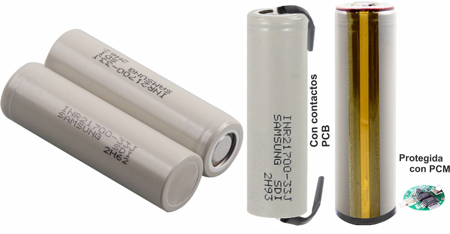 Debe elegir entre los Diferentes tipos: Con o Sin Protección PCM, o con Lengüetas de Níquel.
