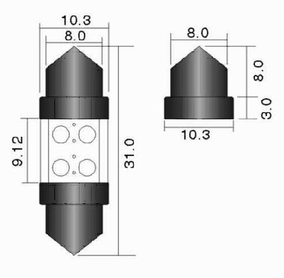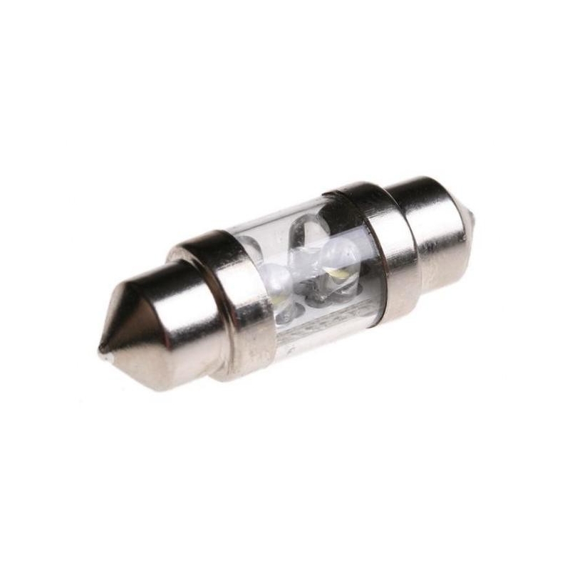 Bombillas para Coches, con casquillos Festoon de 31mm y 4 Led encapsulados de 3mm. Blanco frio y Colores, Rojo, Azul, Verde,