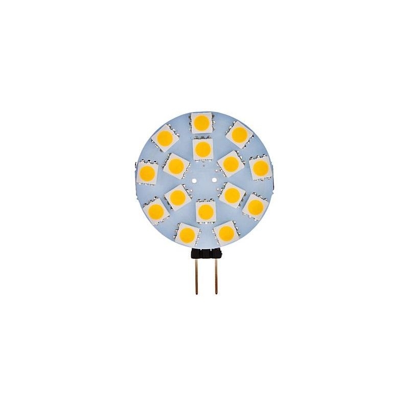 Bombillas de 15 Led Smd 5050, Circuito PCB Redondo de 35mm y 2 patas de Contacto para Casquillo G4, Colores: Blanco frio, y Blanco cálido.