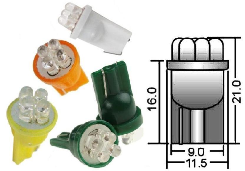 Bombillas T10 de 4 Led 3 mm 12v, Colores: Blanco, Azul, Rojo, Amarillo, Verde. Para Iluminación de Coches.