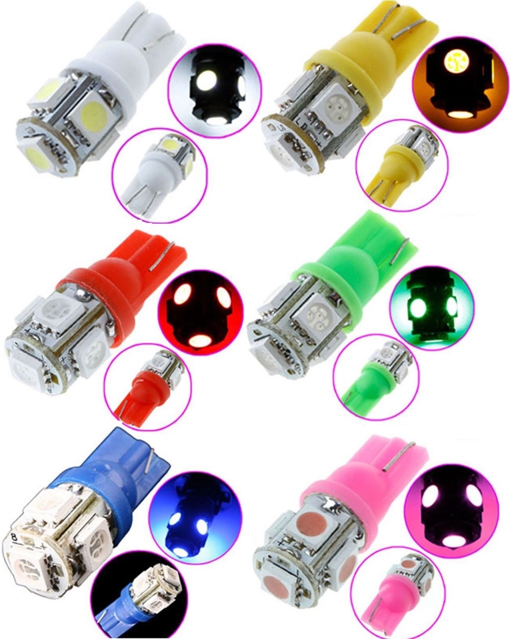 Bombillas para Vehículos con 5 Led Smd 5050 de 12v, Colores: Blancos, Amarillo, Azul, Verde, Rosa, Rojo.