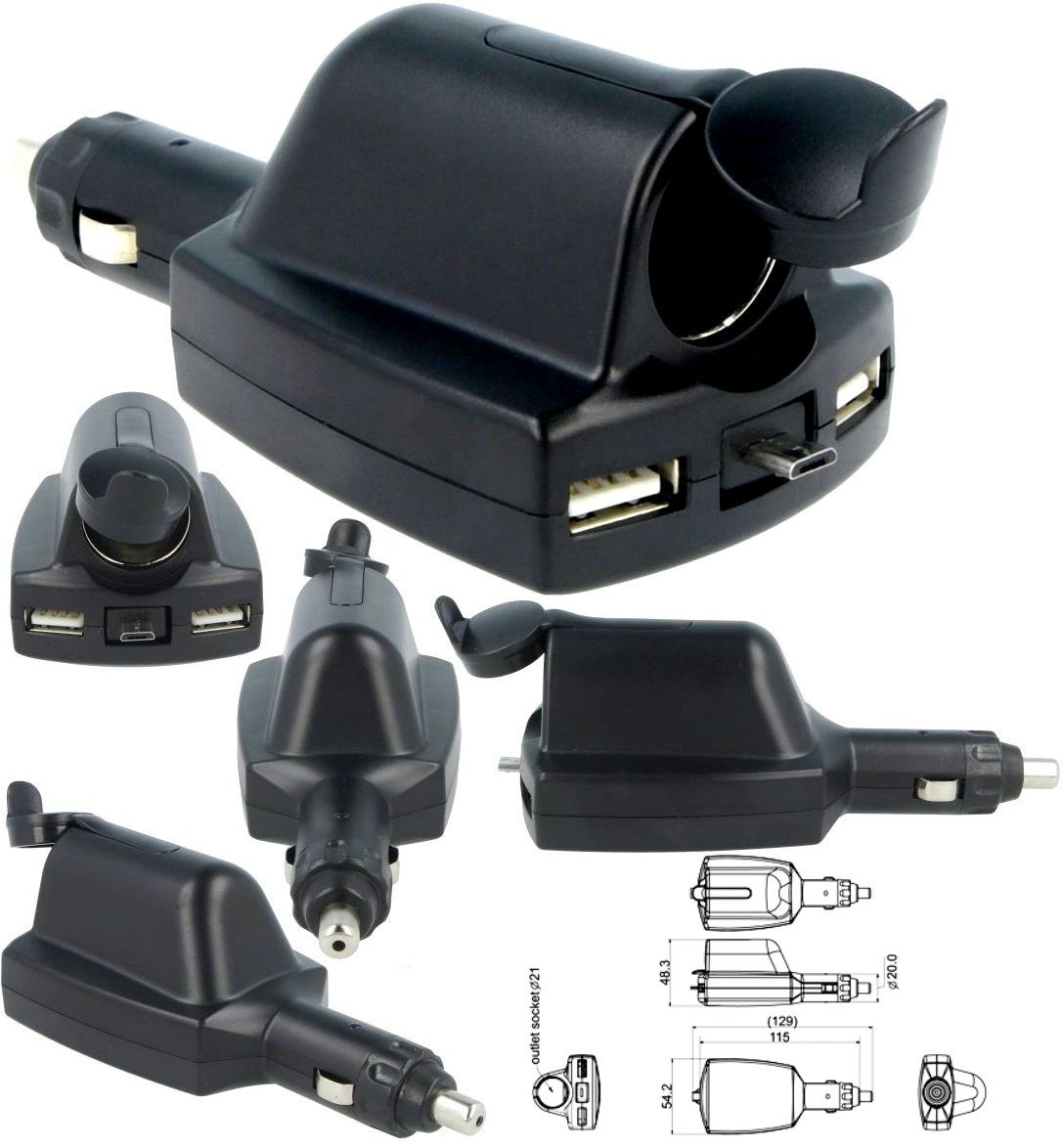 Cargador-Adaptador Mechero Micro USB-2xUSB-A 12/24v-5v