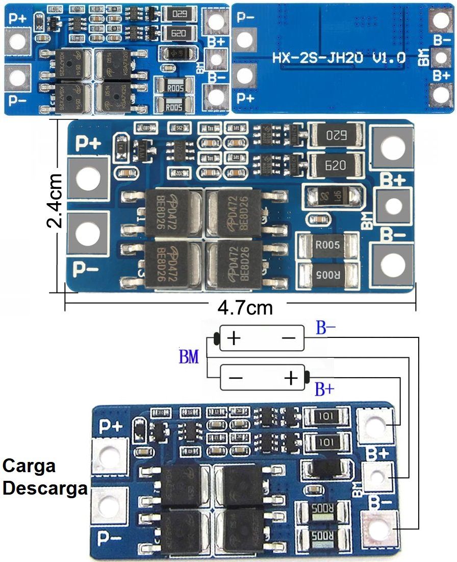 PCM 2S para Baterías de Litio, Li-Po 7.4v 10-15A.