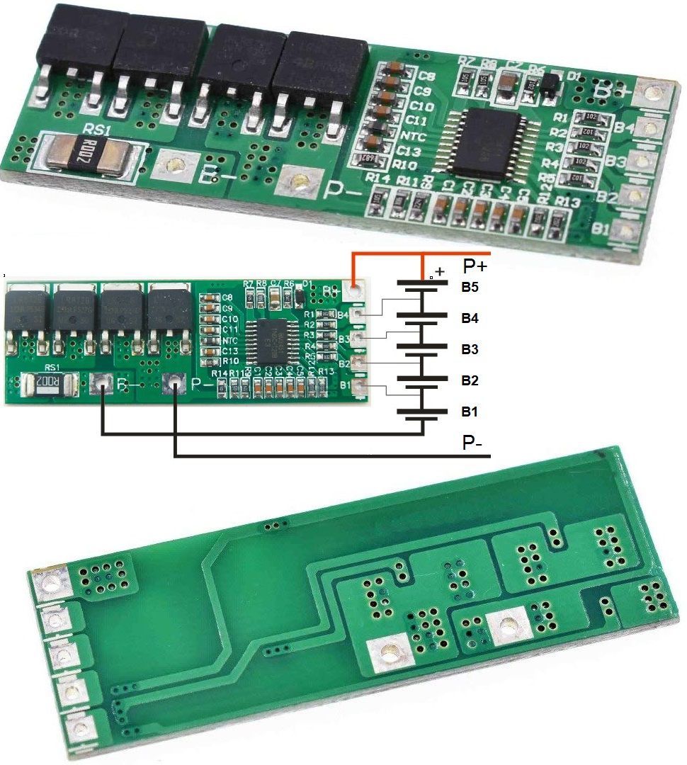 PCM 5S para Baterías de Litio de 18-18.5v. (5x3.6/3.7v en serie)