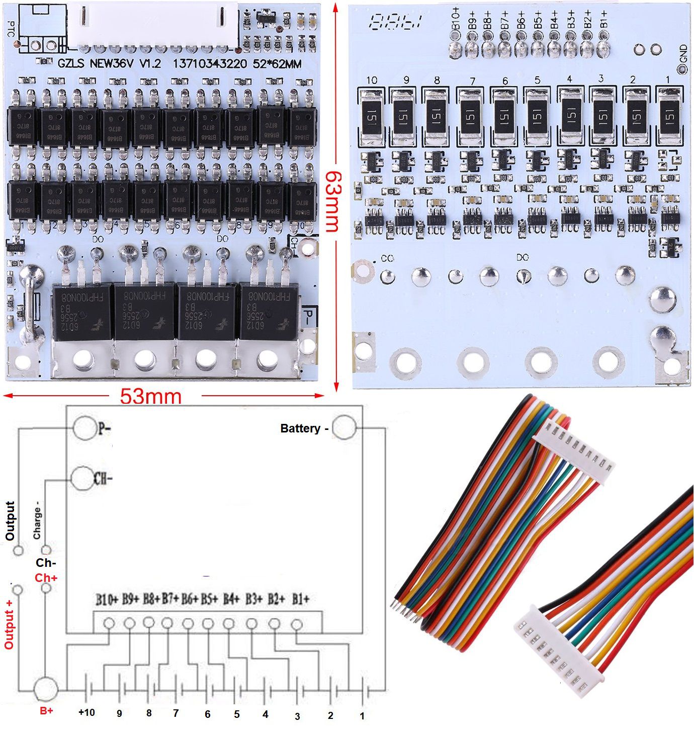 PCM 10S para Baterías Litio de 3.6/3..7v. 30-40A