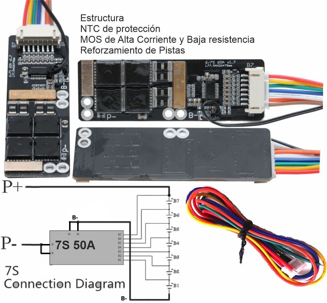 PCM 7S para Baterías de Litio de 25.2/25.9v, 30-50A
