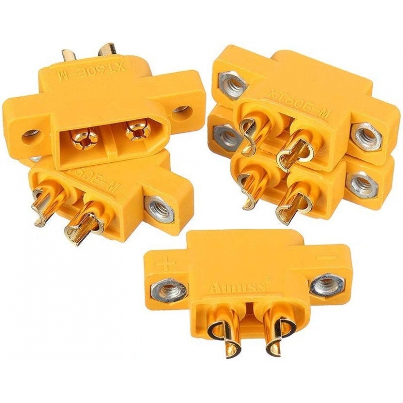 El conector XT-60 esta formado por conectores bananas de 4.5mm chapados en oro, es ideal para aplicaciones de alta corriente, hasta de 60A constante. Se usan básicamente en baterías LiPo o Pack de Litio de alto drenaje.