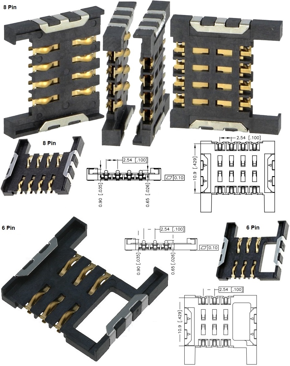 Conectores de Targetas de Memorias SIM, SD Card, Zocalo de 6, o 8 Pines de Contacto.