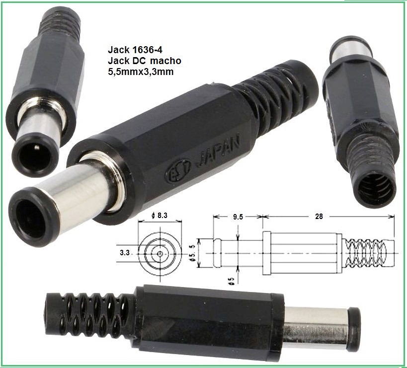 Conector Jack macho de alimentación 5.5-2.1mm 1636-4