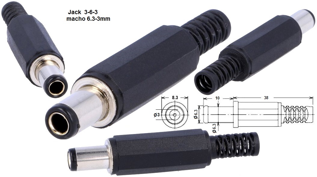 Conector Jack macho de alimentación 6.3-3mm 3-6-3