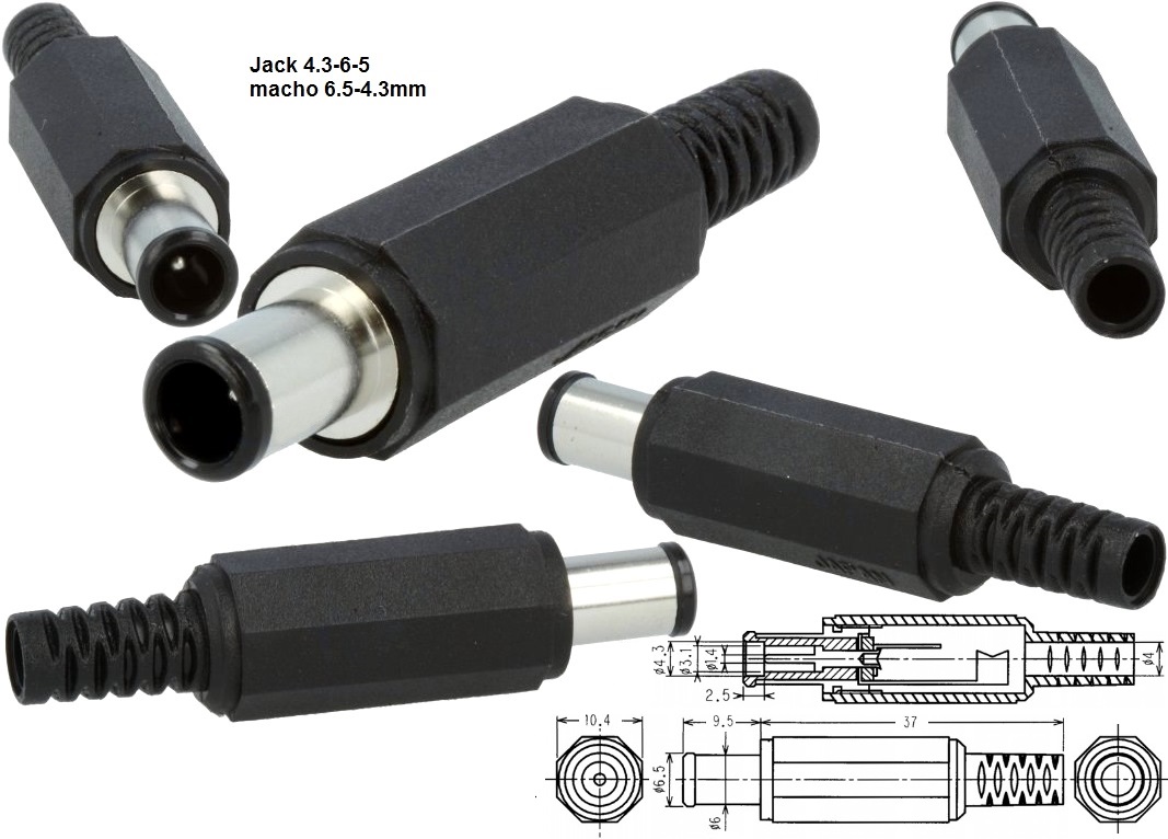 Conector Jack macho de alimentación 6.5-4.3mm 4.3-6-5