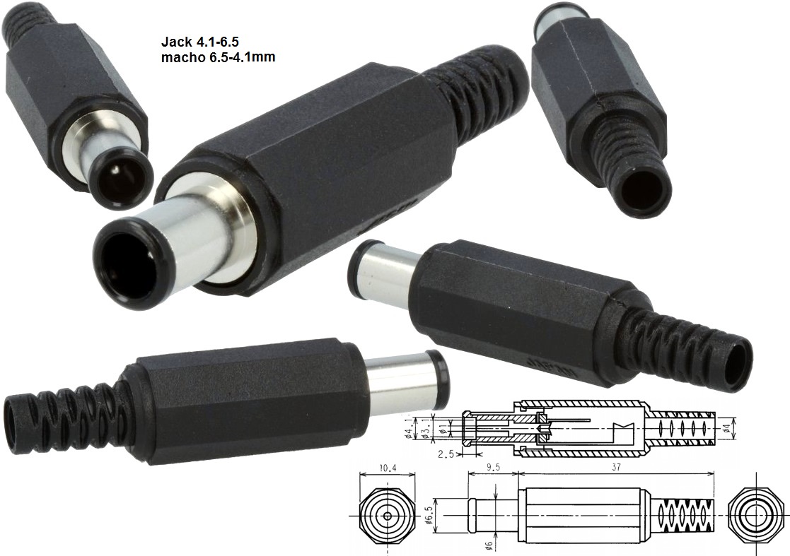 Conector Jack macho de alimentación 6.5-4.1mm 4.1-6-5