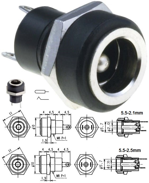 Jack 5.5x2.1mm y 5.5x2.5mm Hembra de Panel Lumberg