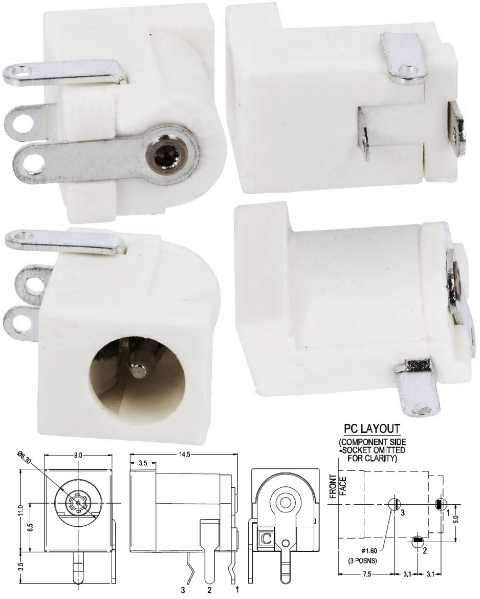 Jack Alimentación Hembra Blanco 5.5-2.1mm para PCB