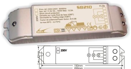 Transformador electrónico para dicroicas y Leds a 12v AC. corriente alterna