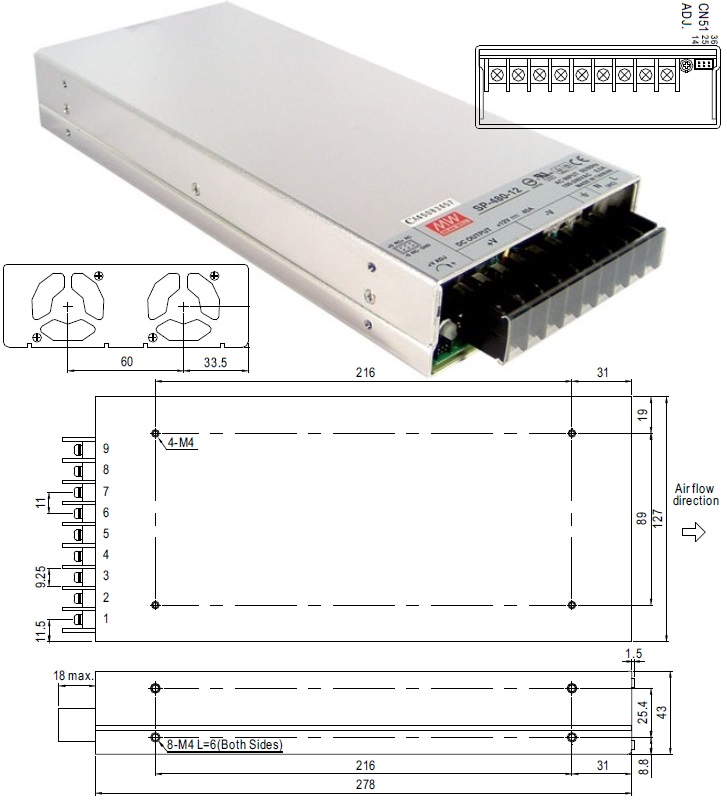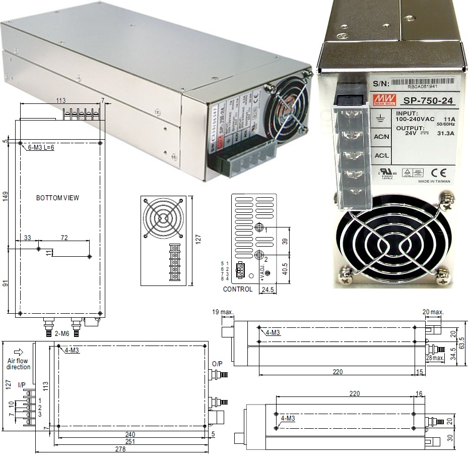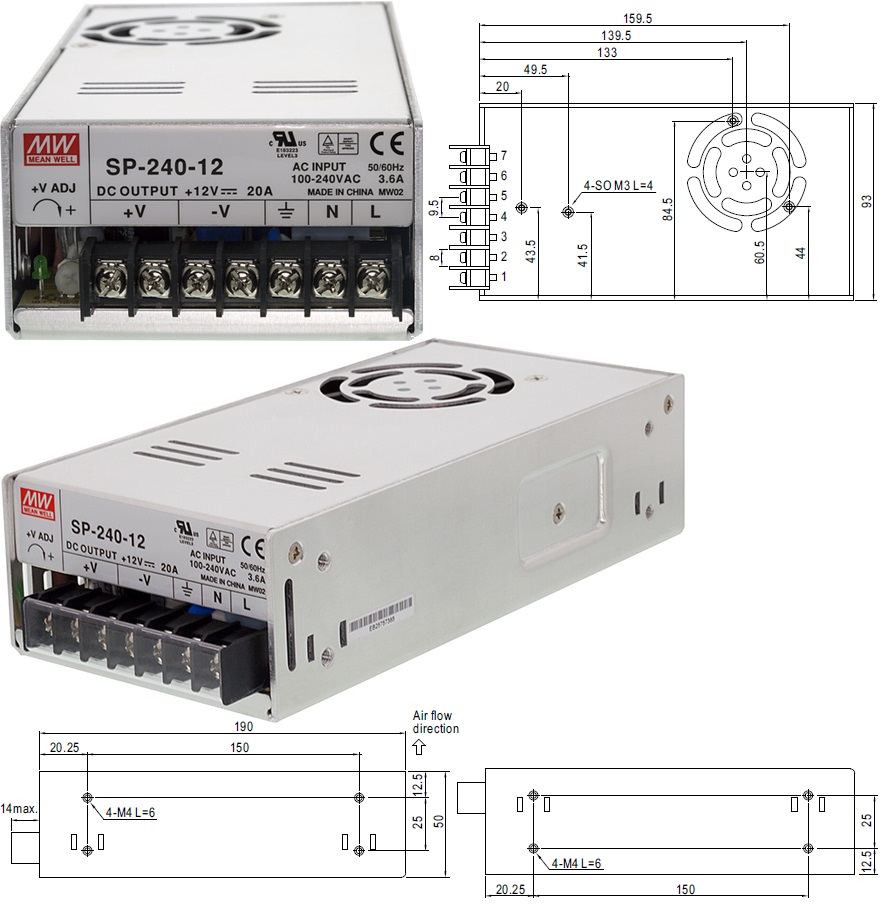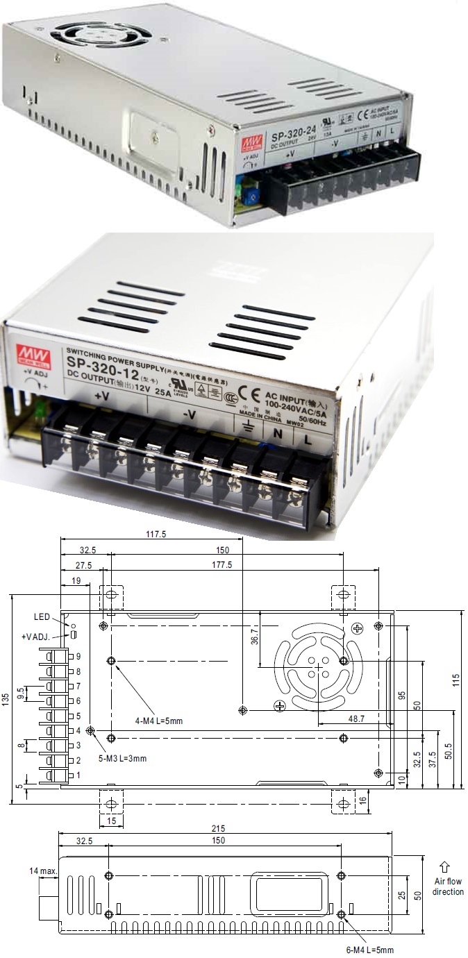 Fuentes de corriente y alimentación Open Frame Mean well SP