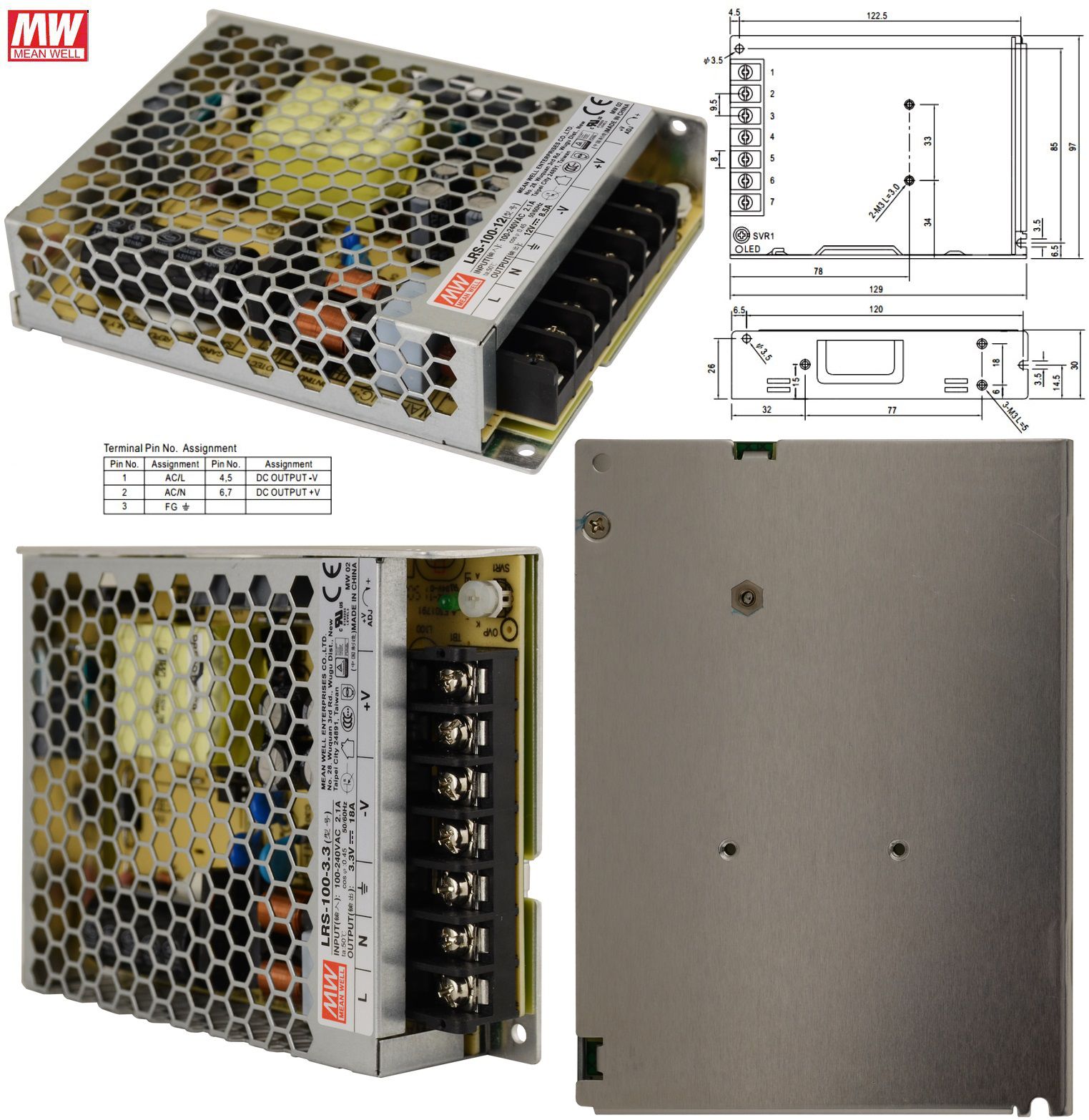 Fuentes de alimentación MeanWaell Open Frame, para Led, Series: LRS100-48v, LRS100-24v, LRS100-15v, LRS100-12v, LRS100-5v