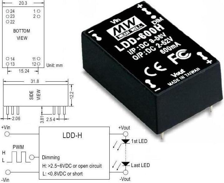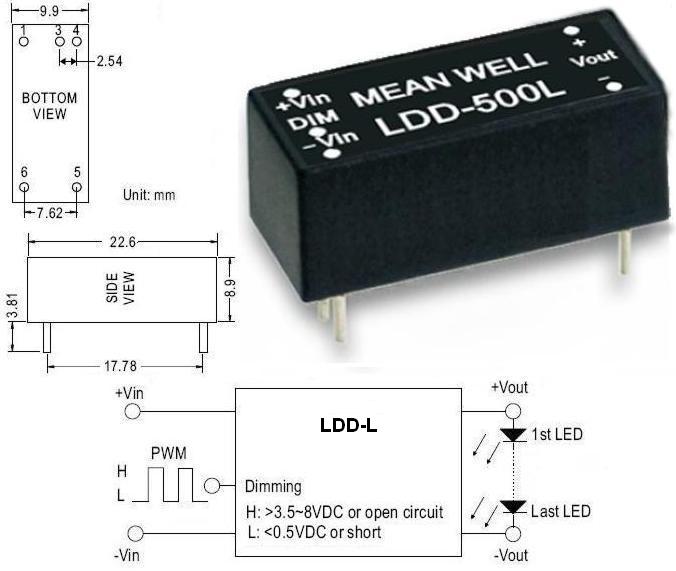 Modo ON with dimming: DIM ~ -Vin >2.5 ~ 6VDC o circuito abierto