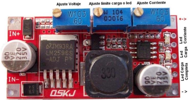 Se trata de una fuente de alimentación de alto rendimiento tipo Step Down DC-DC y CC-CV ajustable en voltaje y corriente. se puede utilizar para alimentar Leds de potencia, también para carga de baterías de Litio, Ni-Cd, Ni-Mh. Basado en el LM2596 regulador de conmutación.