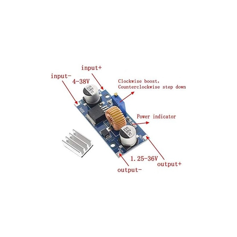 The DC/DC buck module applications the input voltage is higher than the output voltage of the buck field, such as battery, power transformer, DIY adjustable regulated power supply, LCD Monitor and LCD TV, portable instrument power supply,telecom/networking equipment,24V vehicle notebook power supply,industrial equipment buck.12V buck to 3.3V, 12V buck to 5V, 24V buck to 5V,24V buck to 12V, 36V buck to 24V etc.