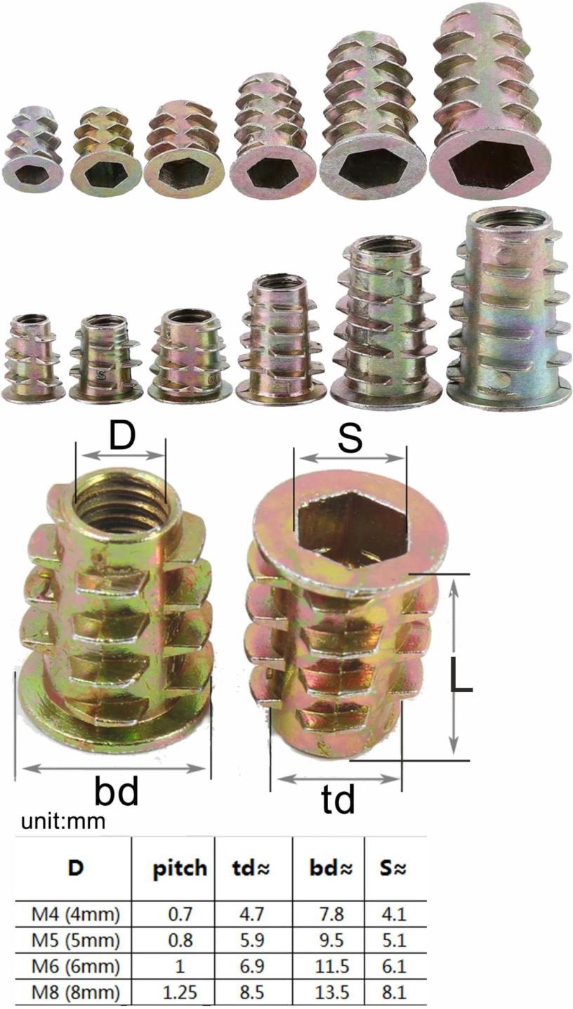 Insertos cabezas hexagonales para plástico y madera