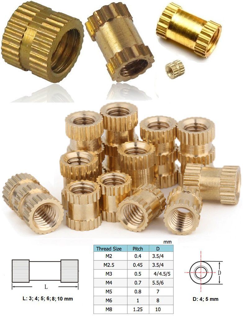 Insertos Roscados de Latón para Plásticos y Torretas de plásticos.
