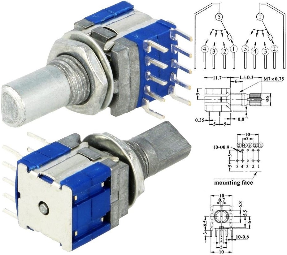 Los conmutadores giratorios o rotativos son interruptores que se montan en paneles de control de dispositivos y circuitos electrónicos, para conmutar o cambiar un circuito. Los modelos más usuales disponen 1 hasta 8 posiciones y 1 y 2 circuitos. en este caso tenemos de muy reducidas dimensiones y de montaje horizontal a PCB