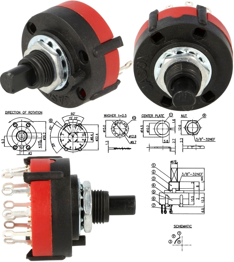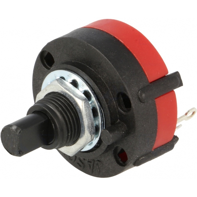 Los conmutadores rotativos son interruptores que se montan en paneles de control de dispositivos y circuitos electrónicos, para conmutar o cambiar un circuito. Los modelos más usuales disponen 1 hasta 12 posiciones y 1 circuito. en este caso tenemos de montaje vertical a PCB