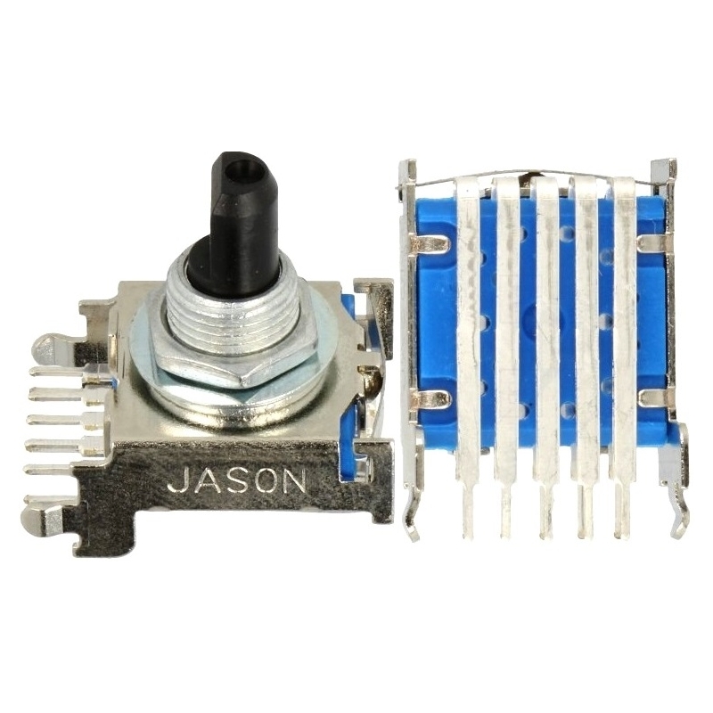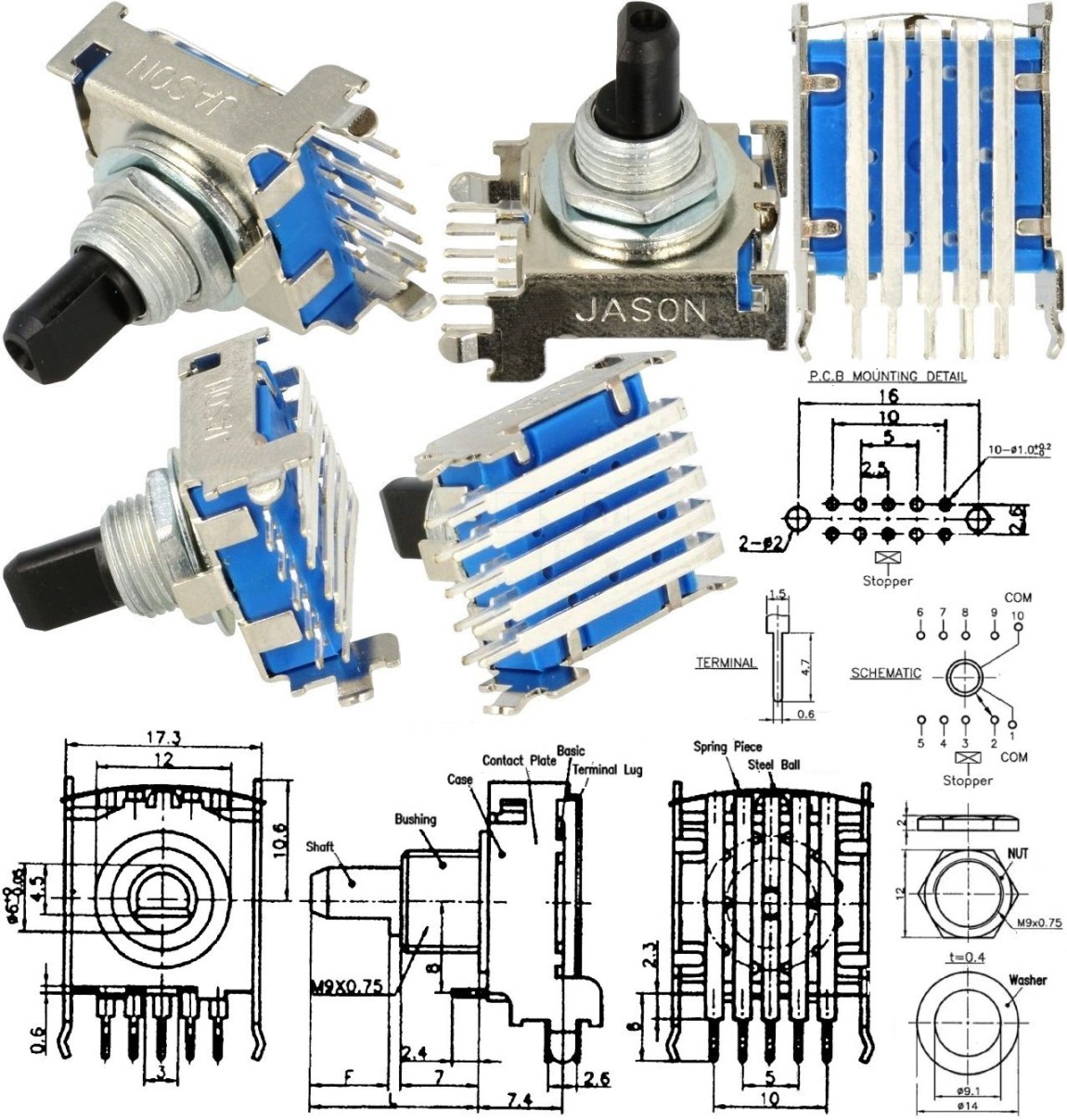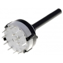 Los conmutadores rotativos son interruptores que se montan en paneles de control de dispositivos y circuitos electrónicos, para conmutar o cambiar un circuito. Los modelos más usuales disponen 1 hasta 8 posiciones y 1 circuito. en este caso tenemos de montaje horizontal a PCB