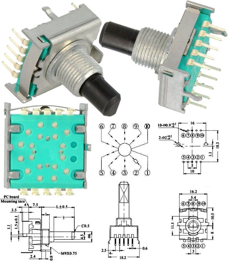 Los conmutadores giratorios o rotativos son interruptores que se montan en paneles de control de dispositivos y circuitos electrónicos, para conmutar o cambiar un circuito. Los modelos más usuales disponen 1 hasta 8 posiciones y 1 y 2 circuitos. en este caso tenemos de muy reducidas dimensiones y de montaje horizontal a PCB