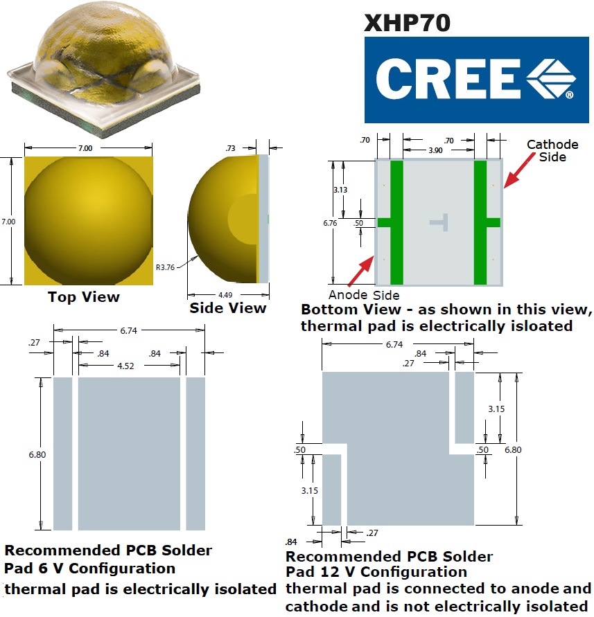 Diodos Led CREE XHP-70 sueltos y Montajes en circuito impreso PCB
