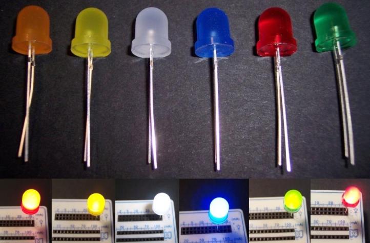 Un led típico contiene un chip semiconductor, emisor de luz, y unos terminales donde apoyar el chip (por donde, a su vez, le llega la corriente). Todo ello recubierto por un encapsulado de epoxy que sirve de protección y de lente.