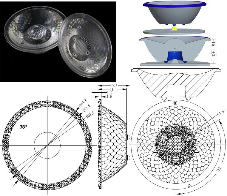Lente Híbrida Ledlink LL01ED-ABY de 44mm