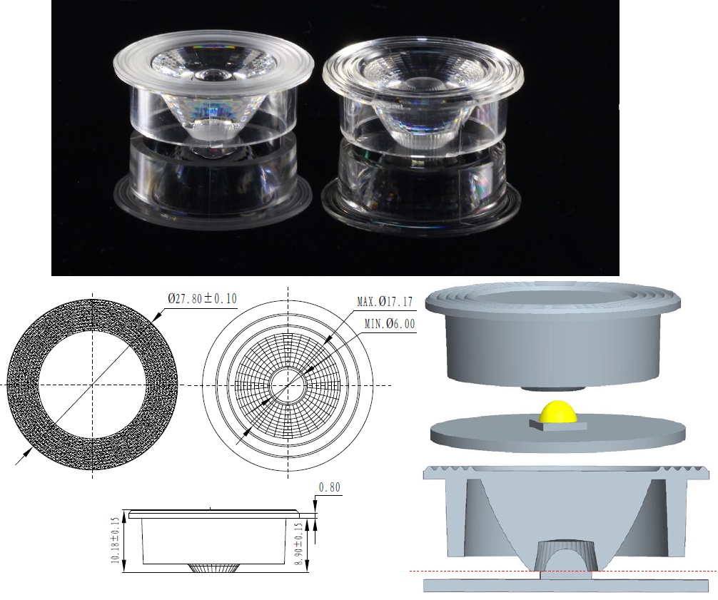 Lente Híbrida de 28mm con soporte para XML y Lumileds