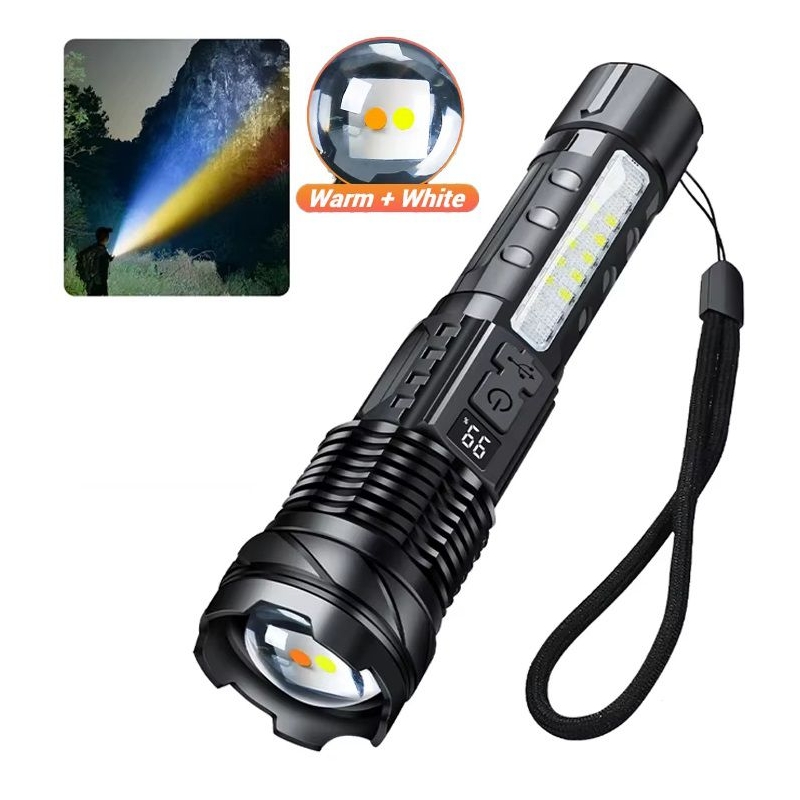 Linterna Cob Blanco Cálido y Frío Zoom más y cable USB. 10 modos de iluminación