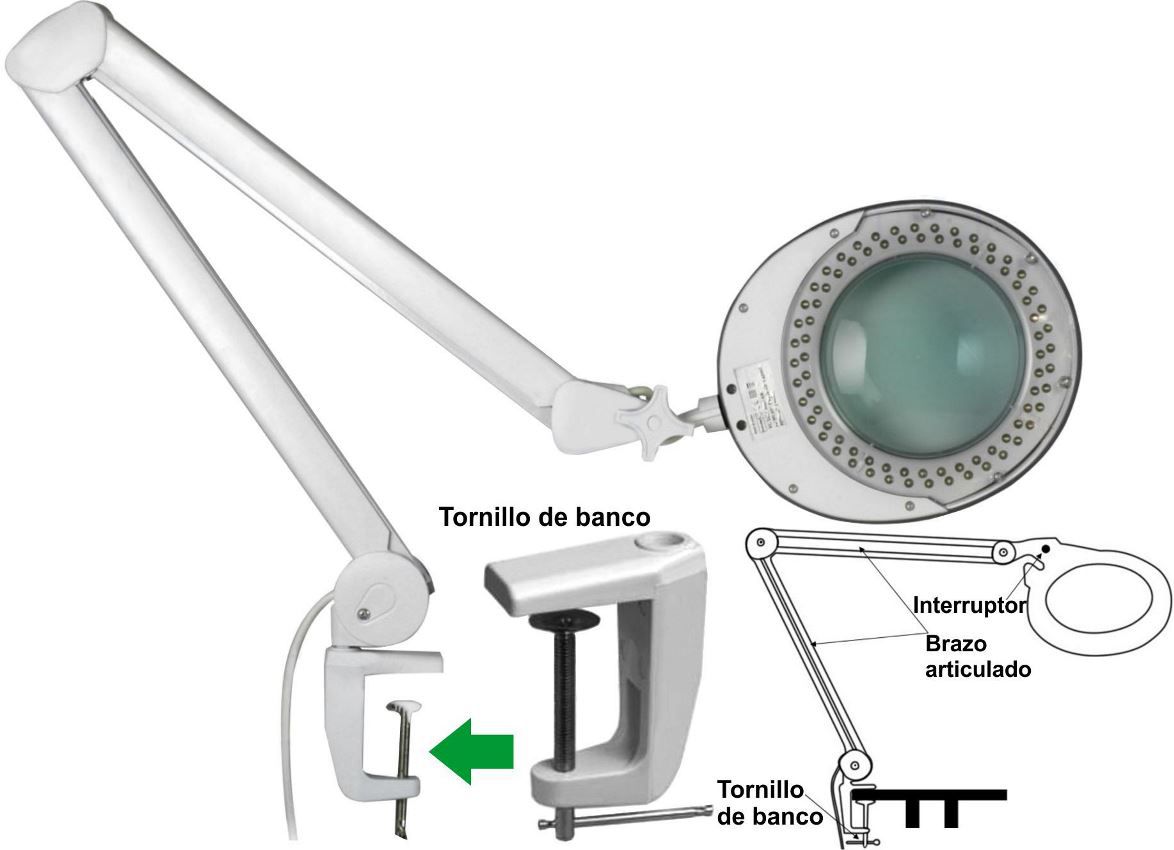 Lupa de sobremesa, brazo articulado 90cm con 80 Led