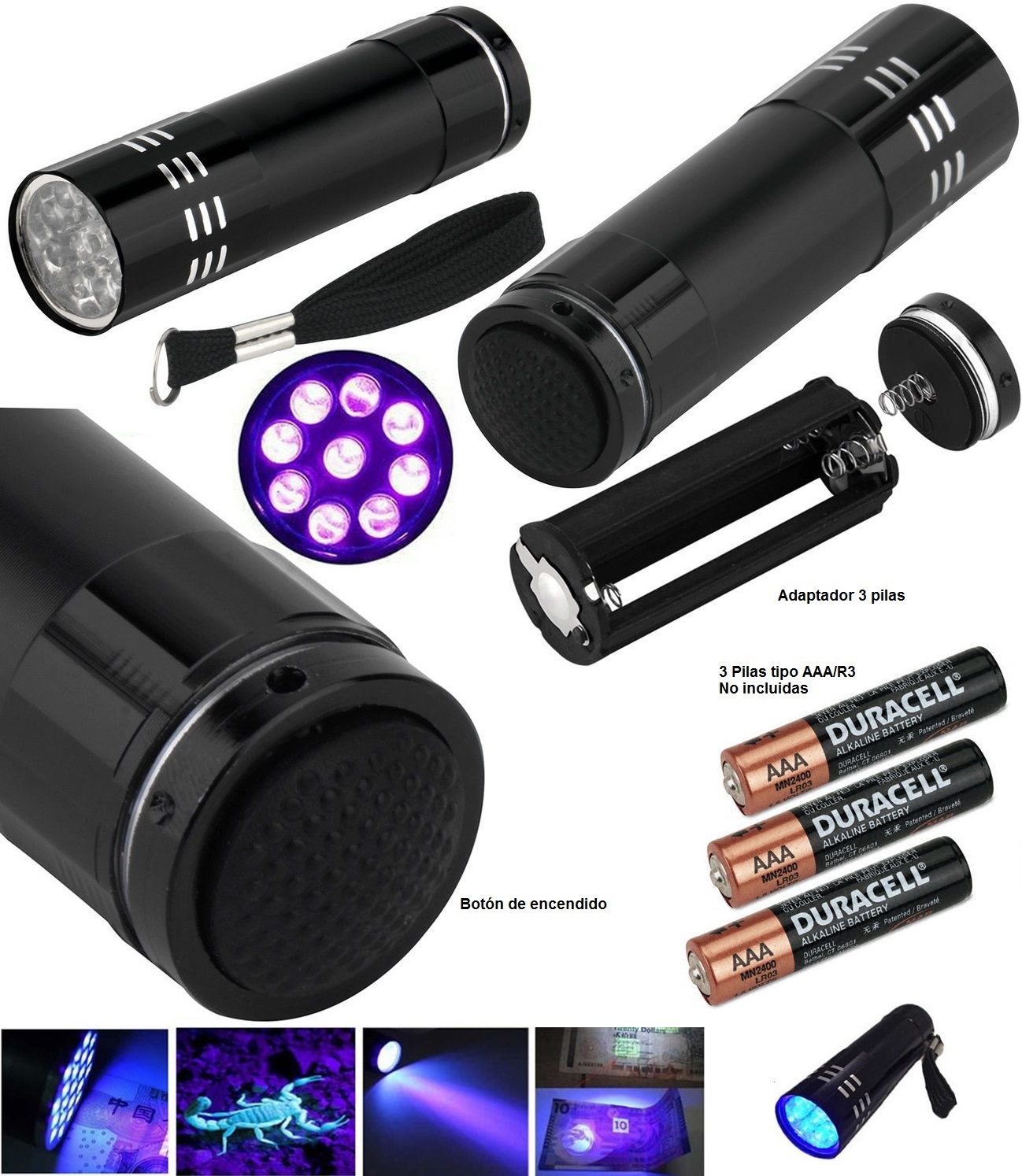 Linterna LED Blanco o Ultravioleta de 9 Led
