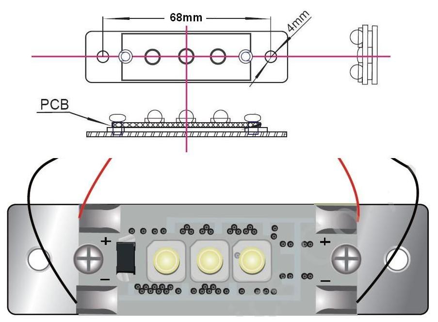 Módulo Rectangular de 3 Led Piranha de 3 chip