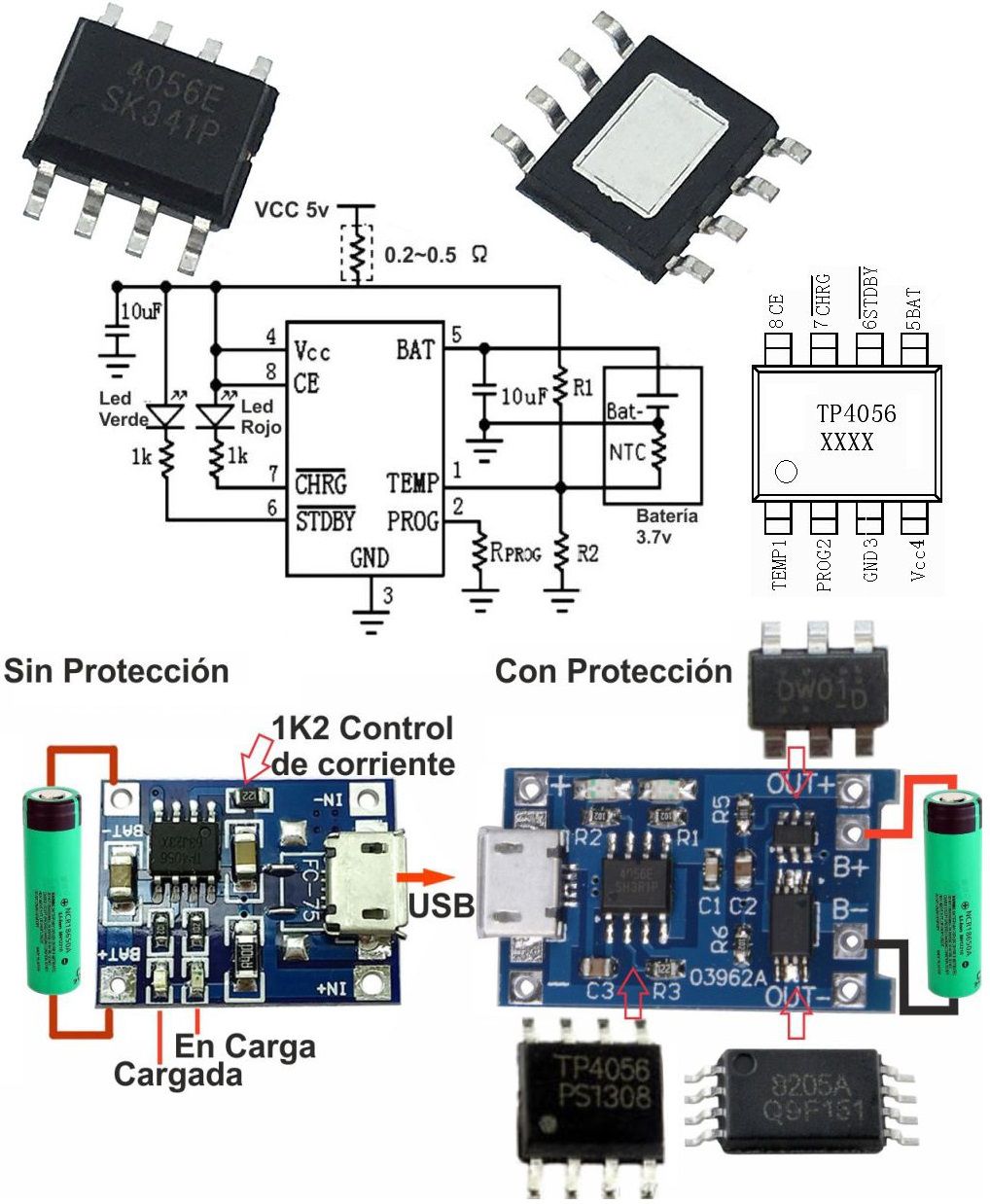 TP4056E Circuito Integrado Gestor de carga de baterías de Litio, USB