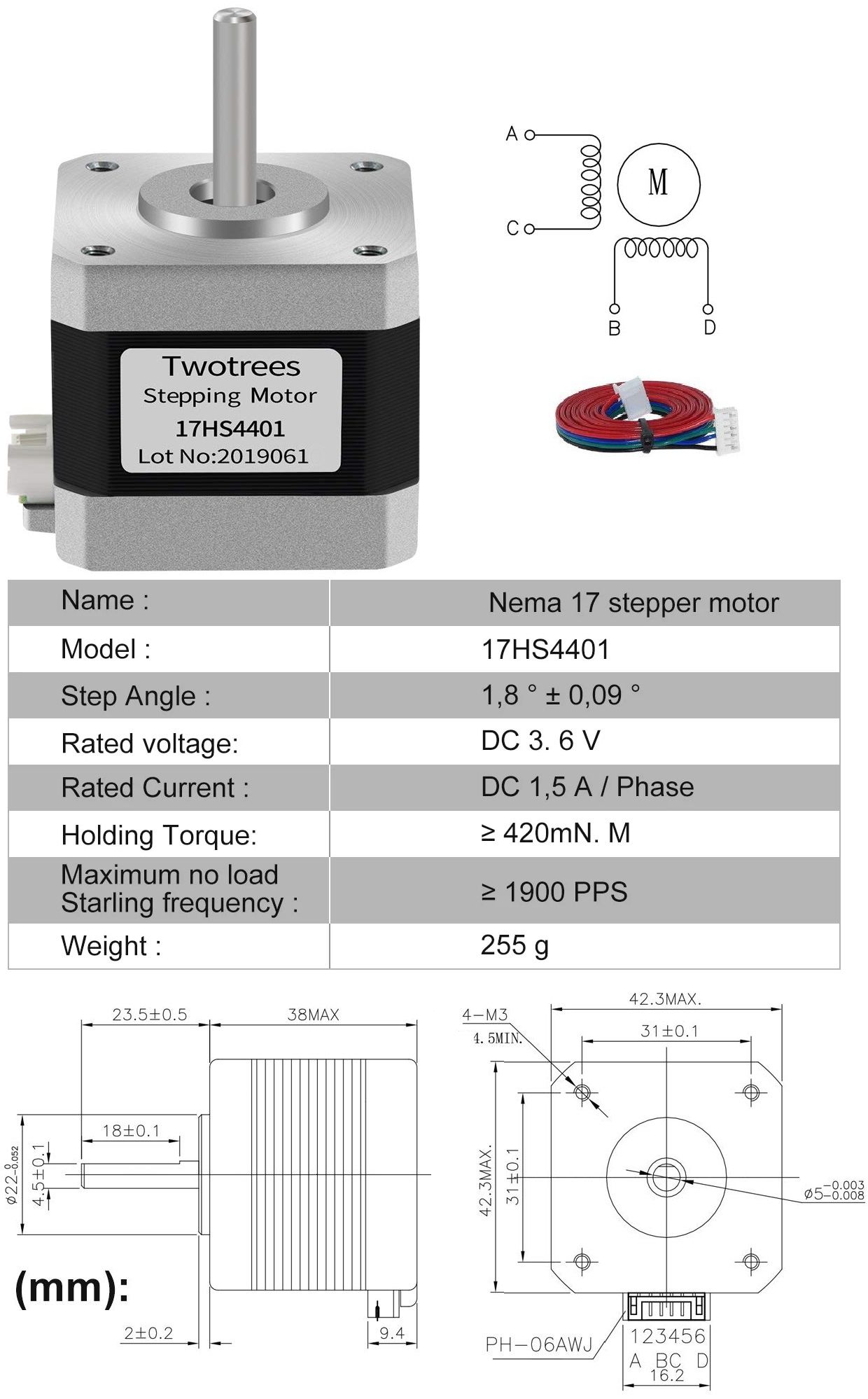 Motor paso a paso 17HS4401
