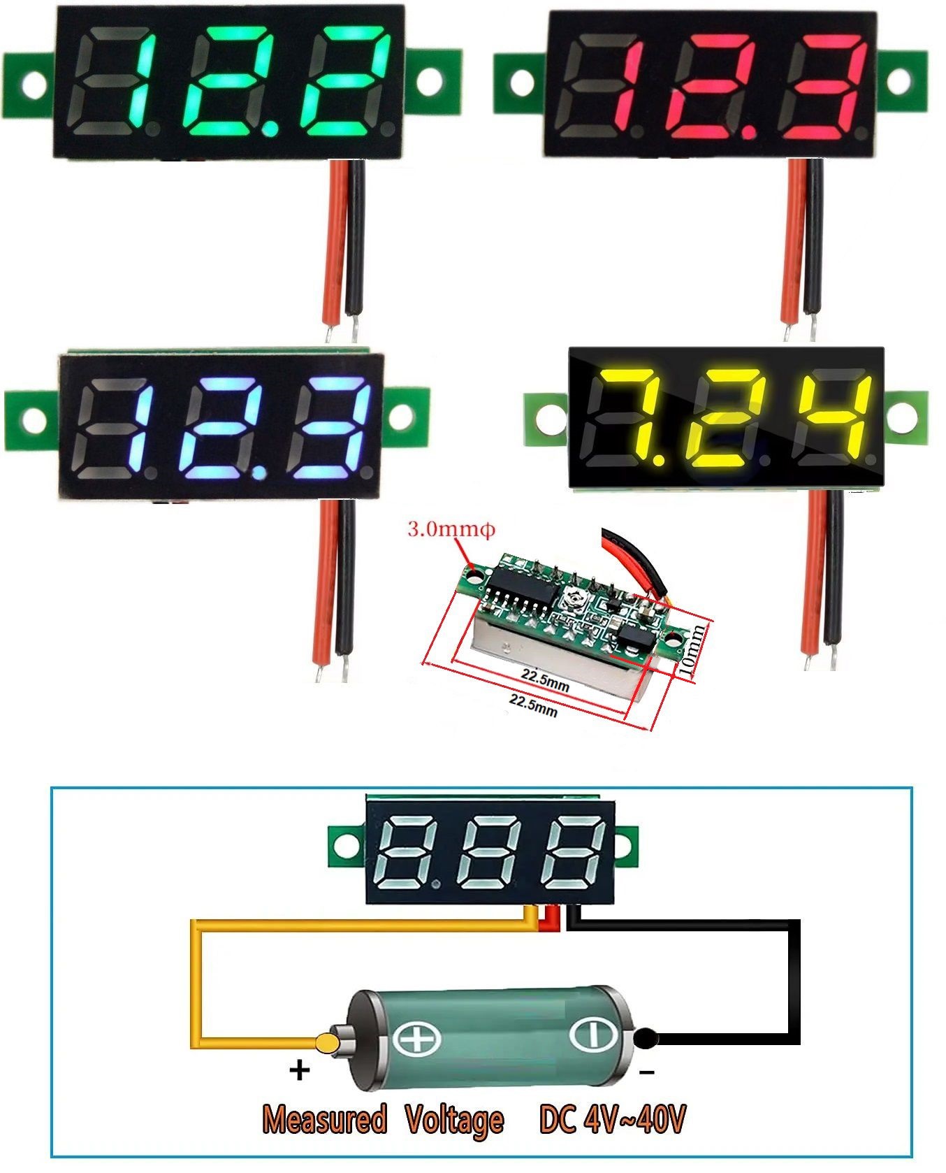 Voltímetro Led 0-30v con 2 cables, 3 dígitos de panel