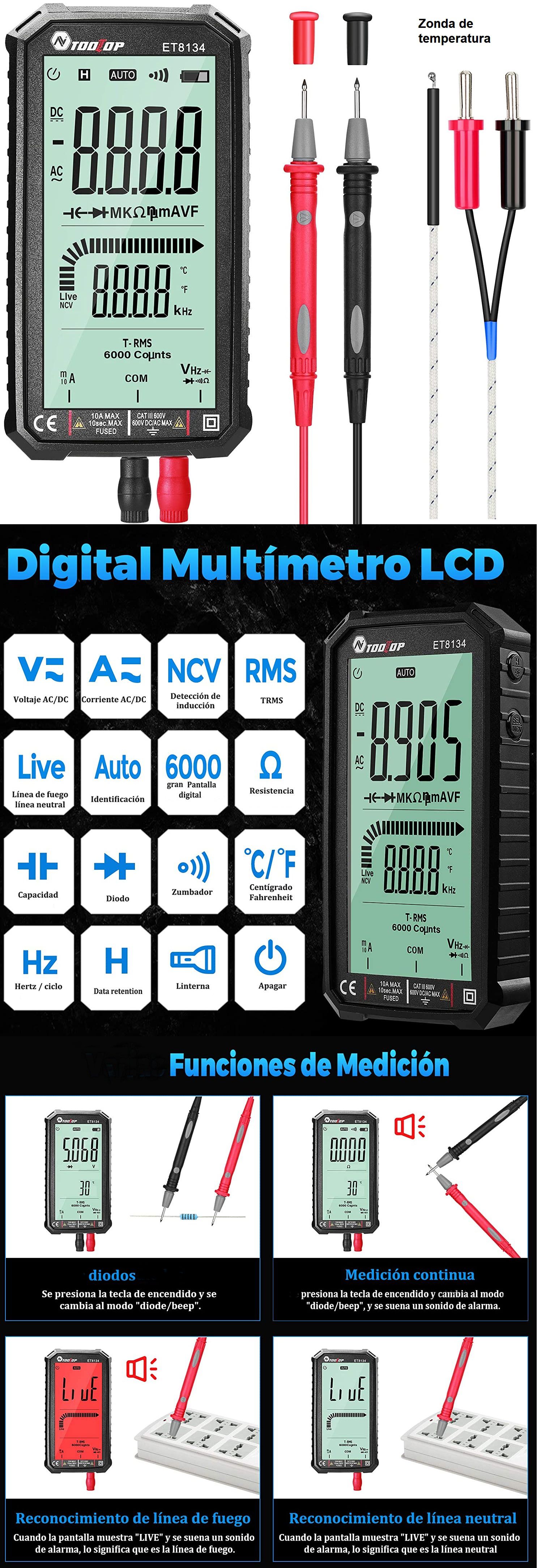 Multímetro multifunción portátil con Gran pantalla LCD de 4,7 pulgadas