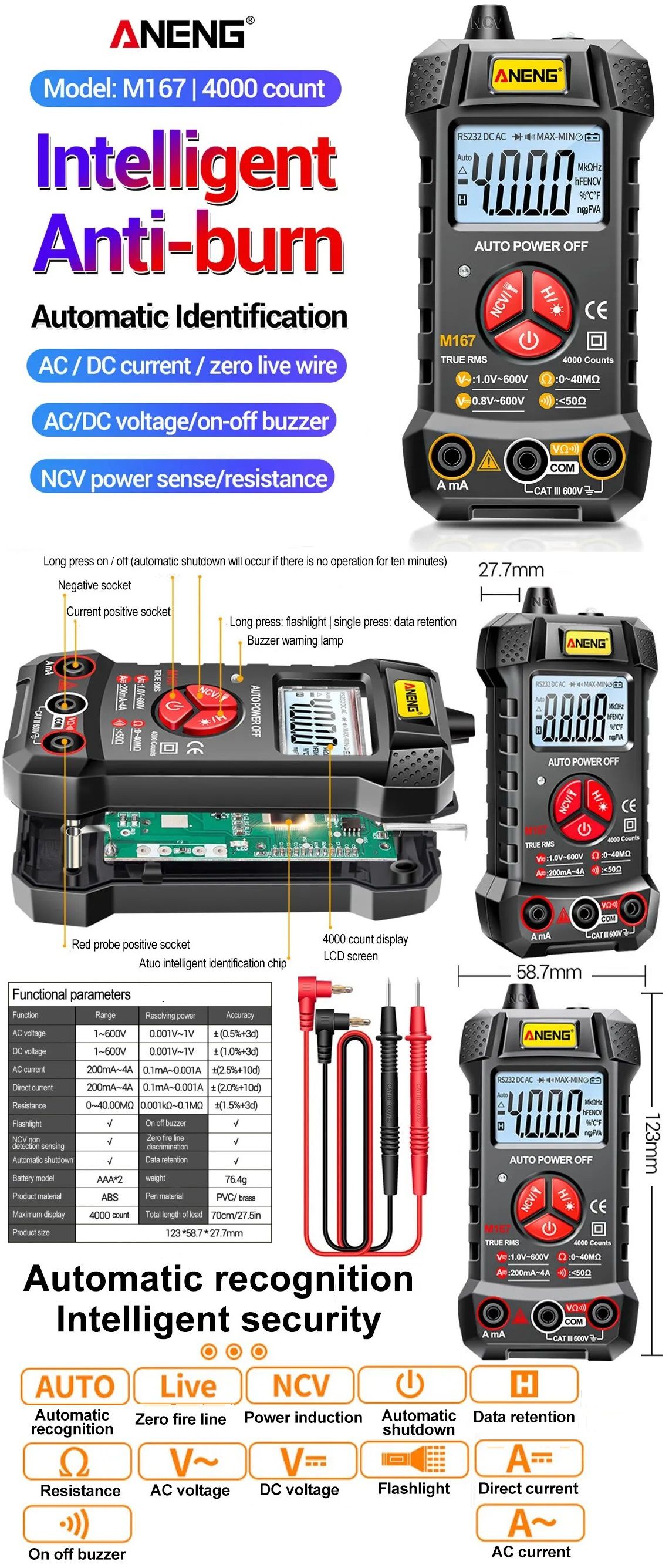 El mini multímetro digital ANENG M167 proporciona mediciones precisas y precisas, lo que lo hace ideal para uso profesional