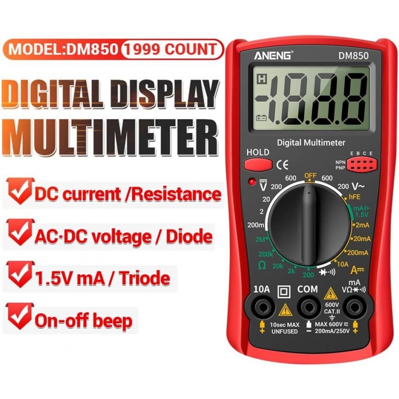 Este instrumento es un multímetro digital compacto de bolsillo para medir voltaje CA y CC, corriente CC, resistencia y diodo.También proporciona función de prueba de temperatura y continuidad audible o se puede utilizar como generador único.Se proporciona protección contra sobrecarga de rango completo e indicación de batería baja.Son el instrumento ideal para usar en campos, como laboratorios, talleres, bricolaje y aplicaciones domésticas.