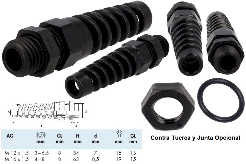 Pasacables/Pasamuros de Cola Negros para Cables o Mangueras, tipo Métrica