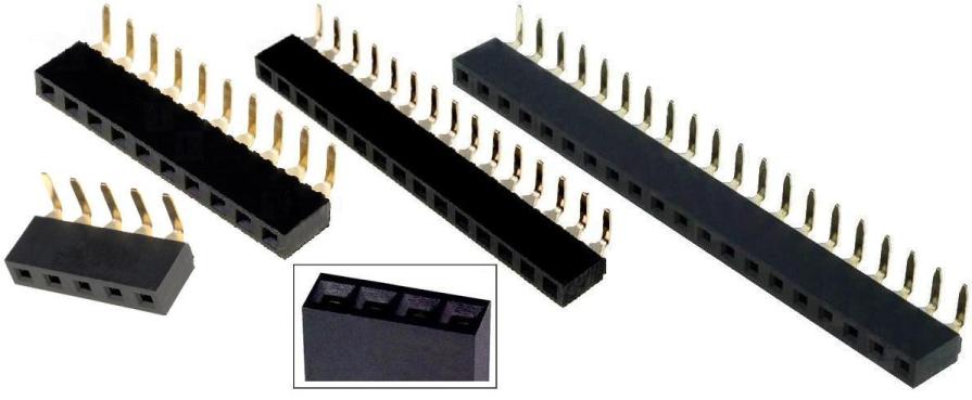 Tiras de Pines Hembra-Macho Acodado Corto, paso 2.54 mm.