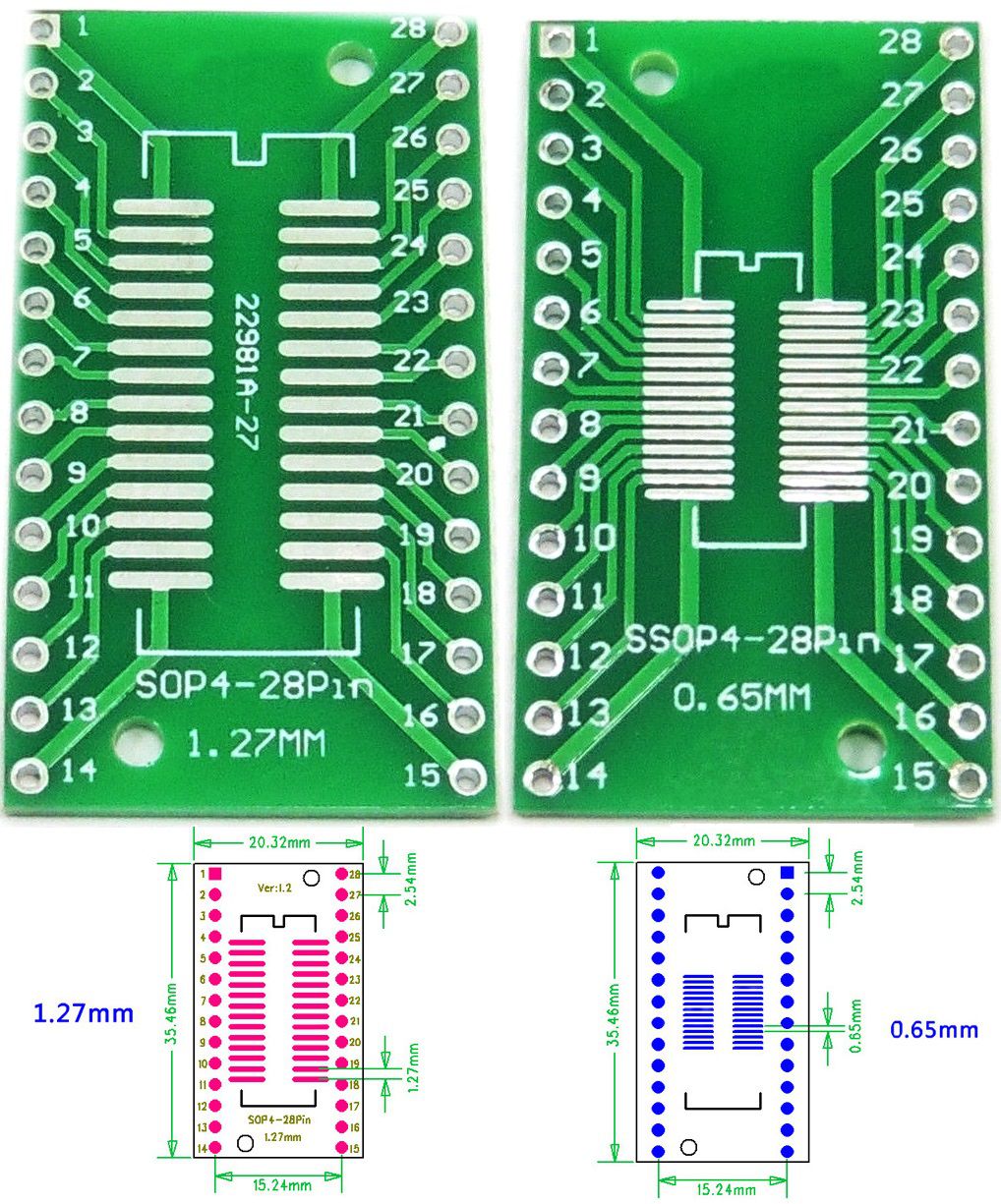 Pcb adaptador SMD Dip SOP-4, SSOP4 a Dip28