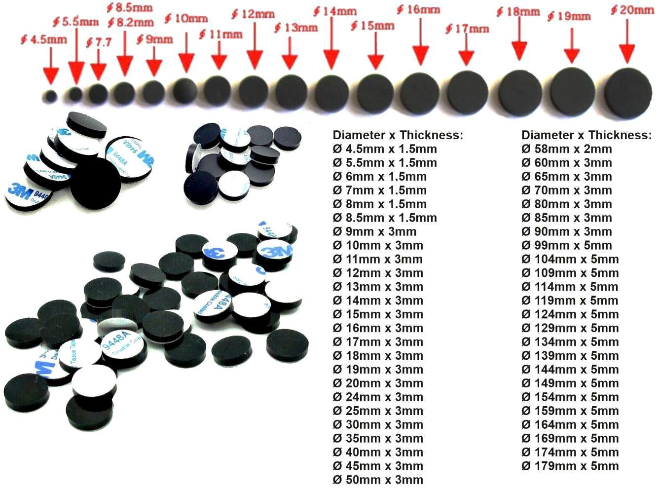 Pies, Patas de Goma-Neopreno con adhesivo 3M