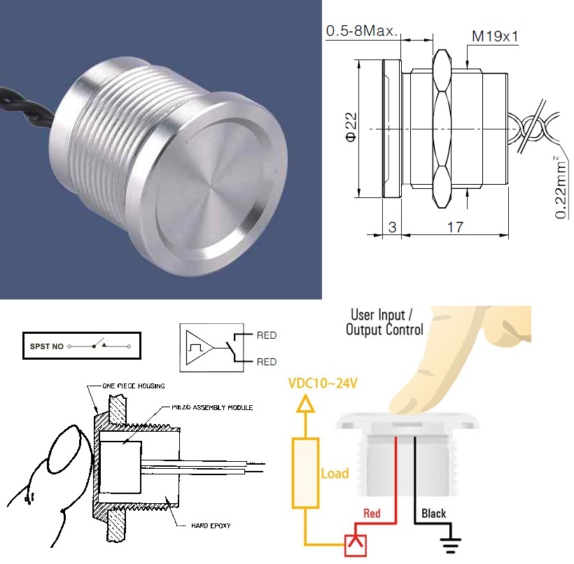 Pulsador Piezoeléctrico 0Y01 22mm Concavo